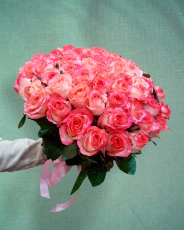 3 Гортензии, 10 Альстромерий, 10 Эустом Алиса Вайт, 11 Роз, 15 Роз Голландские, 9 Диантусов, 5 Маттиол